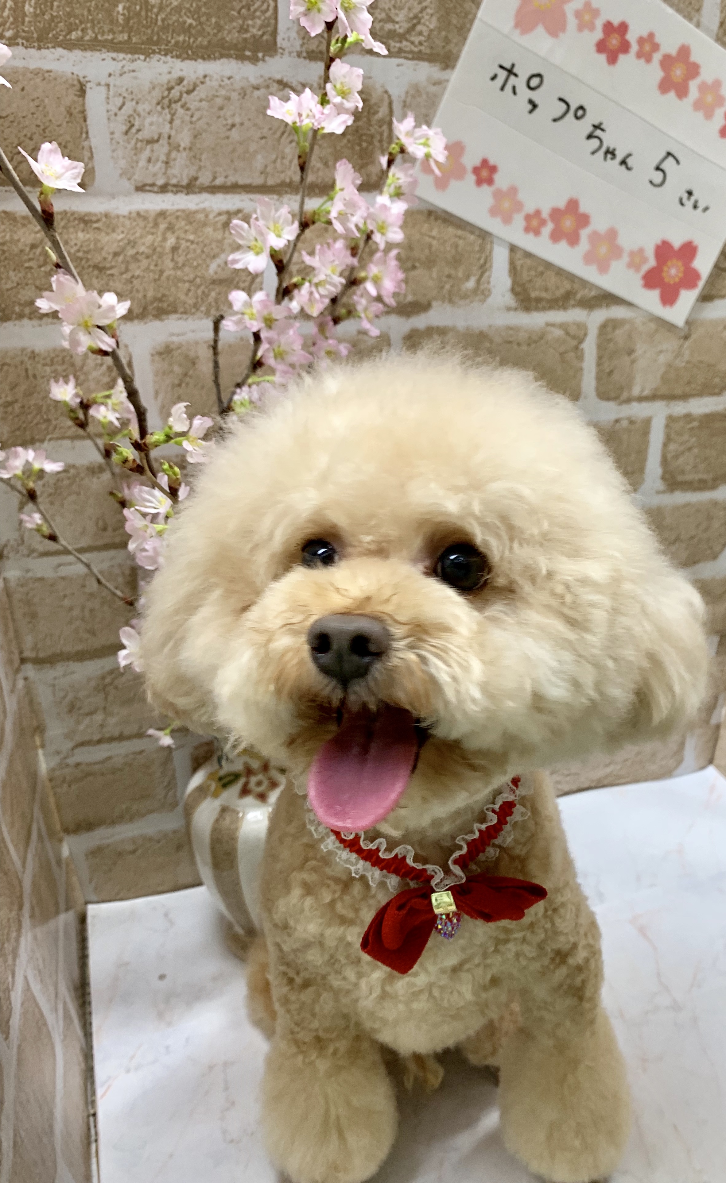 2回目のトリミング!赤いリボンがとっても似合います♪