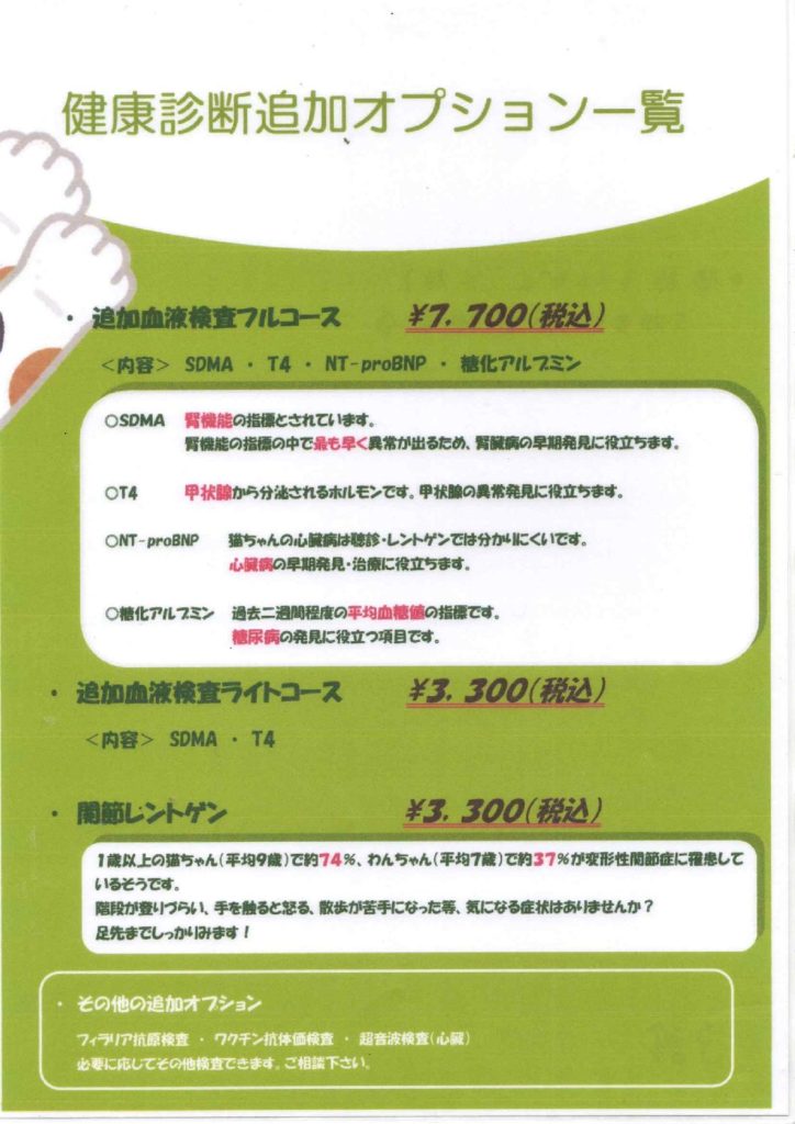 また、来年から健康診断コースの一部内容・価格を改定する予定です。ご了承ください。
